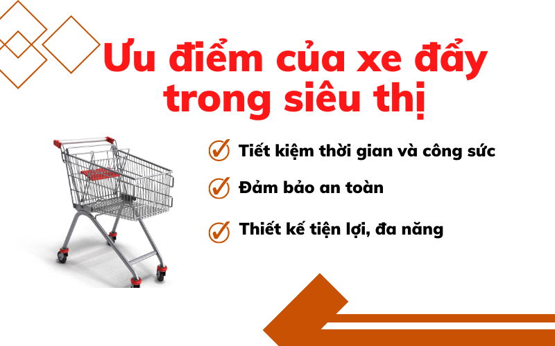 Sử dụng xe đẩy siêu thị là một hình thức tiết kiệm sức người hiệu quả. Khách tới mua hàng ở siêu thị thường có nhu cầu mua nhiều hàng hóa một lúc. Do đó, chỉ cần có chiếc xe đẩy hàng siêu thị, khách hàng có thể yên tâm mua sắm cả ngày mà không lo mang đồ nặng.